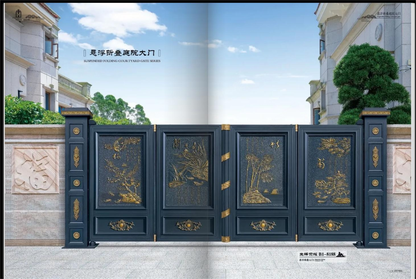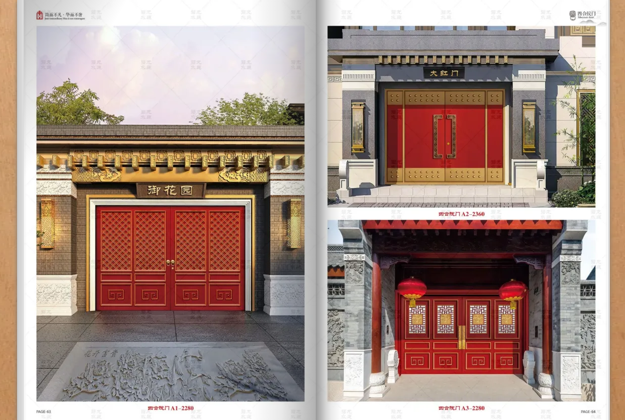 三亚四合院大门 大红门 悬浮悬折门